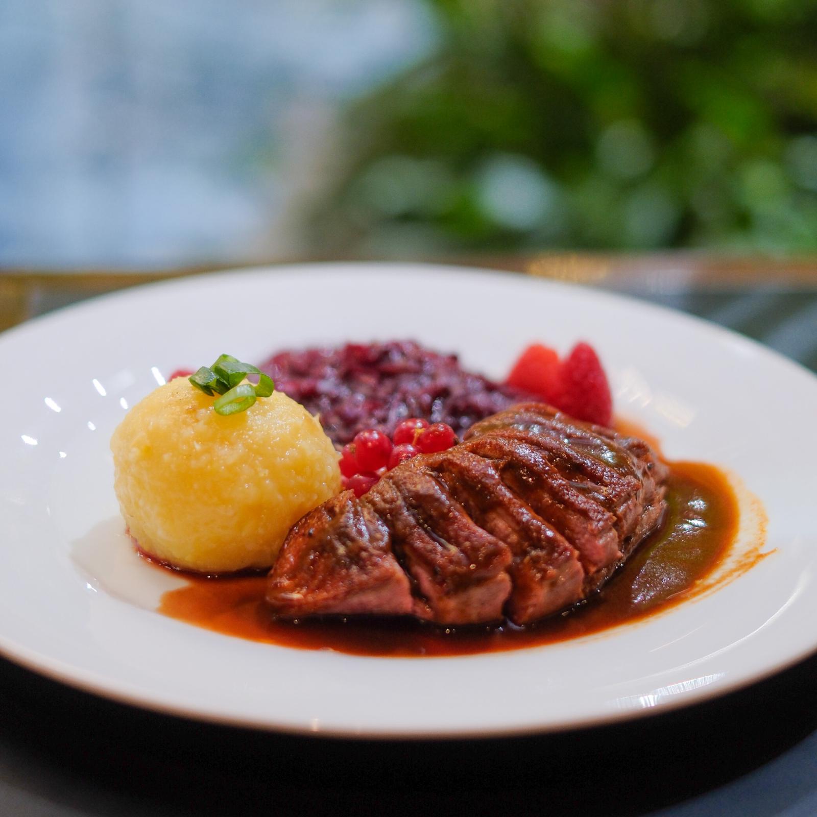 Das Konzept „Das Beste vom Einfachen aus den Alpenländern“ begeistert Münchner und Gäste der Metropole. Der Eigengeschmack und Ursprung der Produkte stehen im Fokus. So verfeinert ein interessanter Mix aus Kräutern und Gewürzen die gebeizte Lachsforelle vom Königssee, der Mozzarella von Büffel Bill entfaltet seinen ganzen Geschmack mit geschmorter Roter Beete, Birne & Amaranth und hausgemachte Reh-Maultaschen werden in einer intensiven Bouillon serviert.
