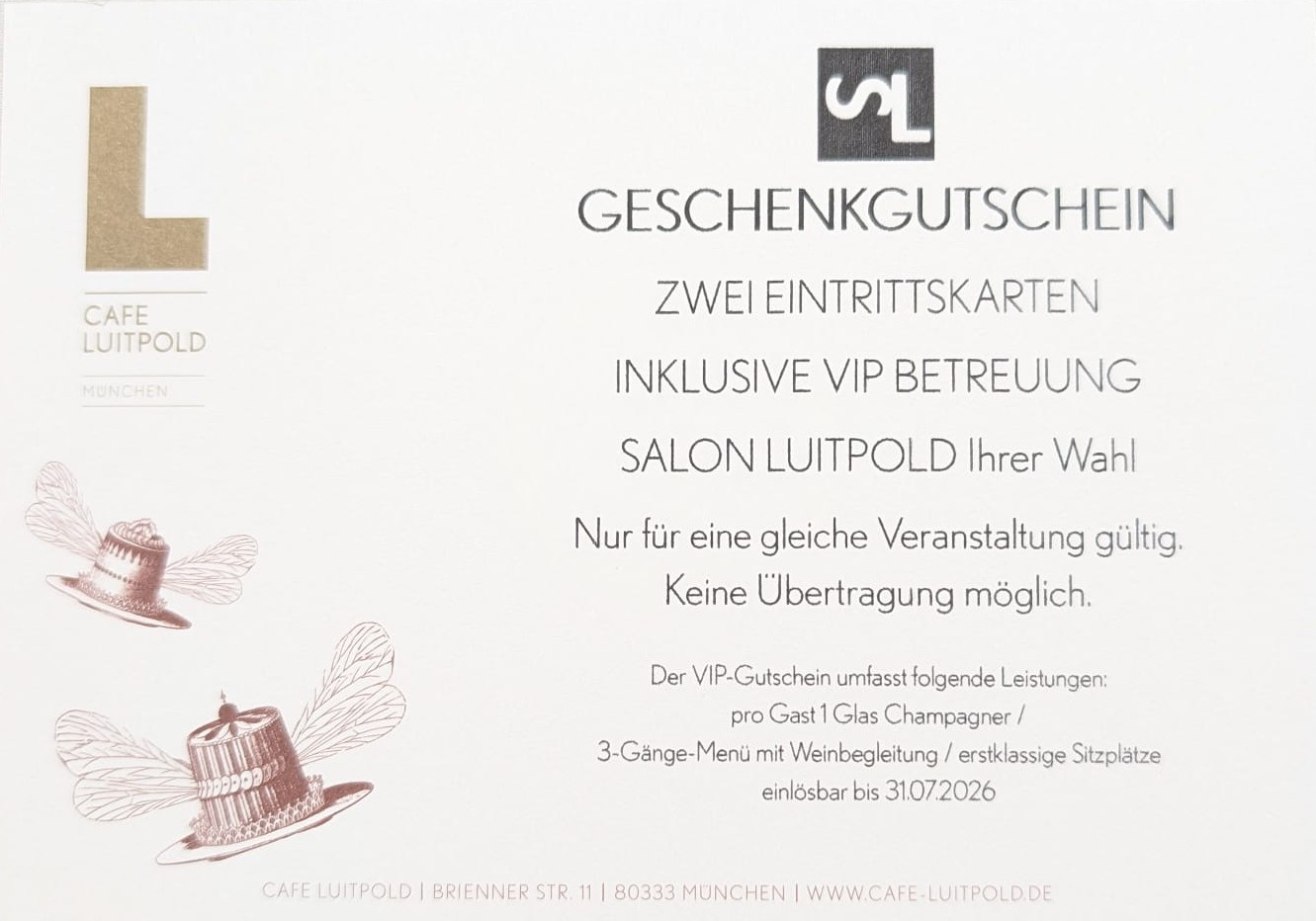 Verschenken Sie einen Abend, der Genuss, Atmosphäre und Kultur auf einzigartige Weise verbindet – ideal für besondere Anlässe oder als exklusives Geschenk für Menschen, die das Außergewöhnliche lieben.